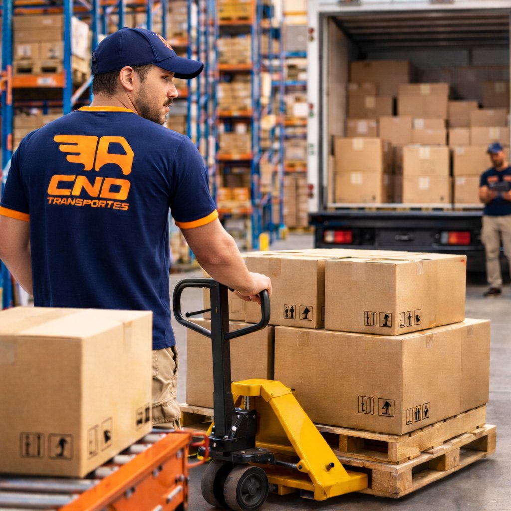 Serviço de embarque e desembarque de mercadorias, com equipe preparada para manuseio seguro, organização e agilidade na operação.